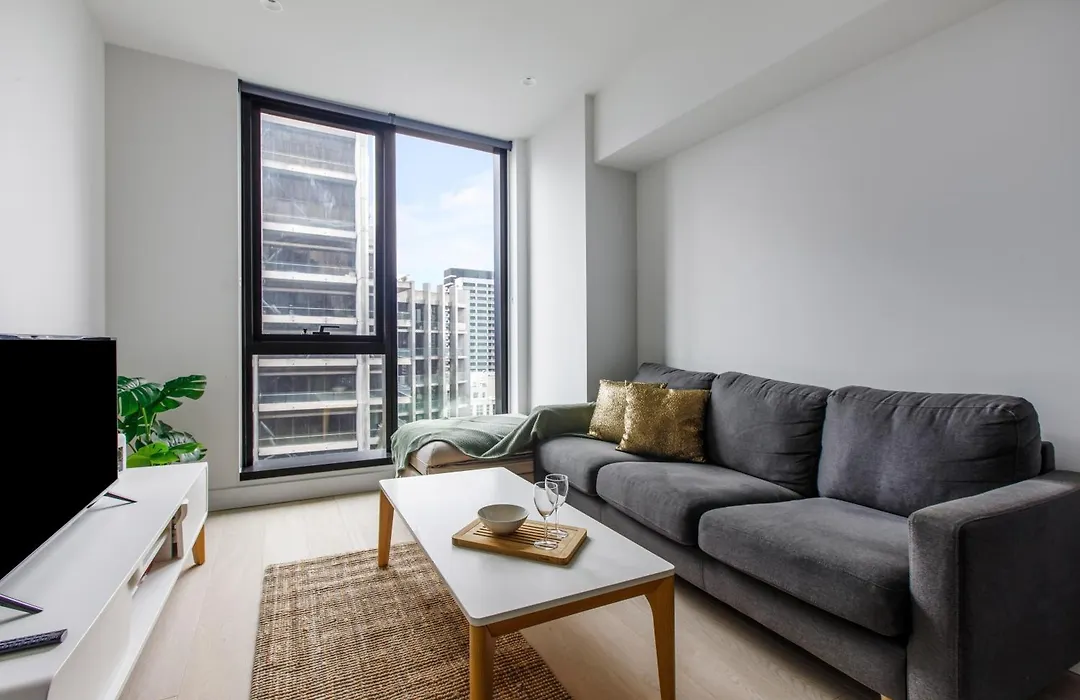 La pièce offre à ses clients un coin salon et une cuisine, ainsi que des conforts modernes tels qu'une climatisation. Profitez du confort d'une salle de bain dans les logements Modern Nomads Melbourne Central 2Br Near Station & Qv Market, équipée d'un sèche-cheveux. De plus, vous trouverez une toilette séparée et une douche.